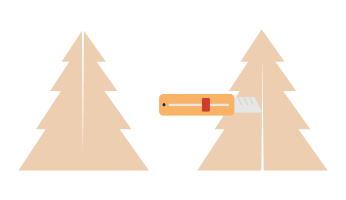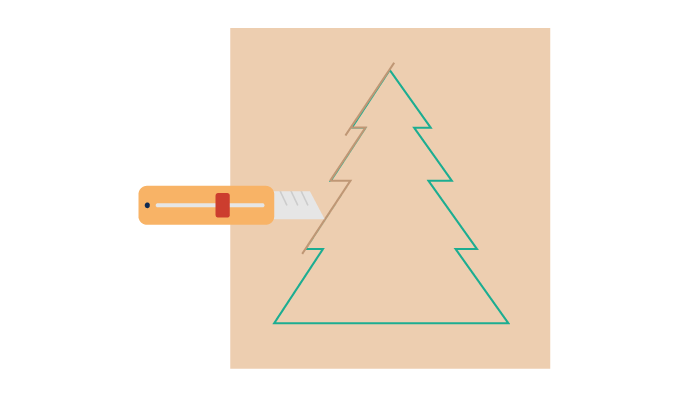 Usando tijeras, un cuchillo o una regla, corta el cartón siguiendo la forma del árbol. Para obtener un corte fino, usa la herramienta que sea más precisa.