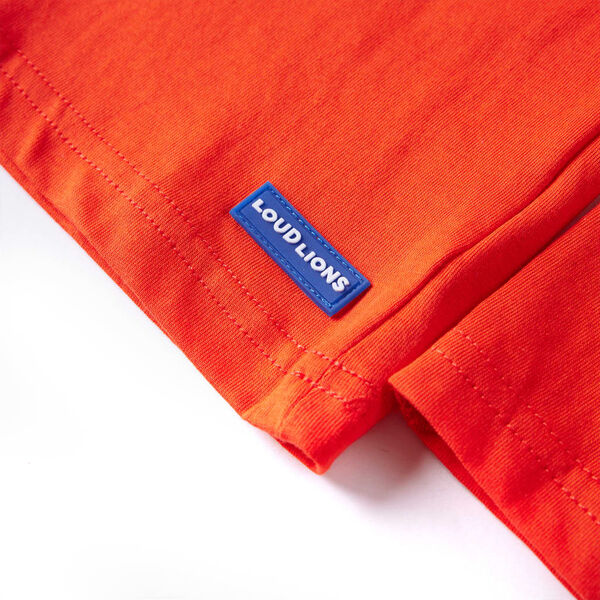 Esta camiseta para niños tiene manga larga, escote redondo y forma recta. Esta camiseta de color naranja brillante posee un estampado de coches de carreras. La camiseta de manga larga para niños está confeccionada en algodón 100%, de tacto suave y agradable.