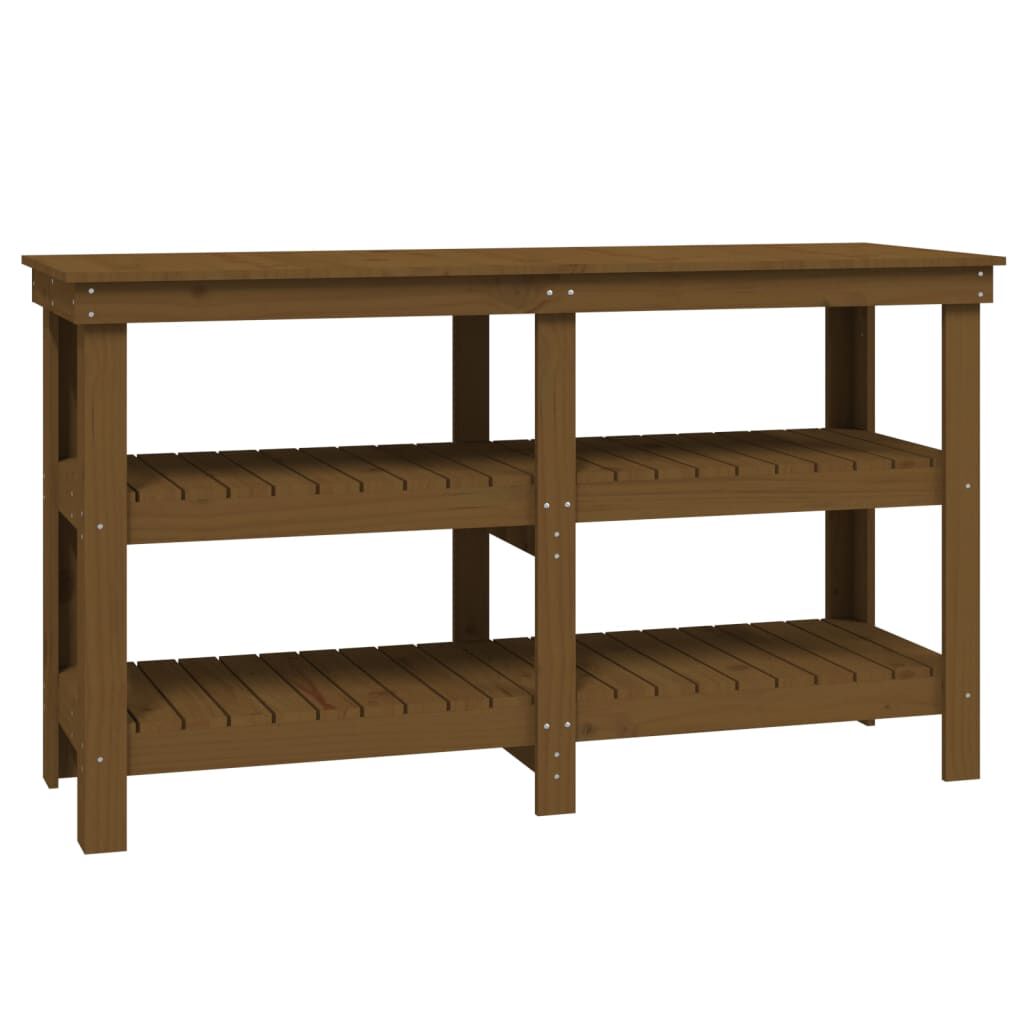 vidaXL Banco de trabajo madera maciza pino marrón miel 142,5x50x80 cm
