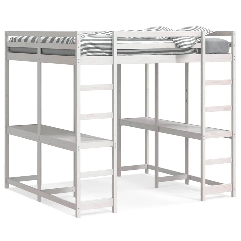 vidaXL Cama alta con escritorio y escalera madera blanca 140x200 cm