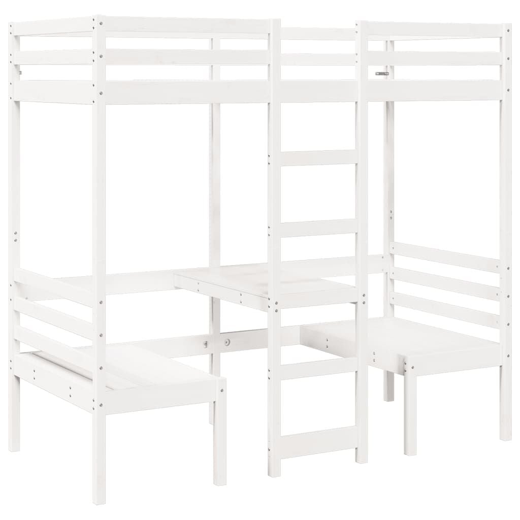 vidaXL Cama alta escritorio y asientos madera maciza blanco 75x190 cm