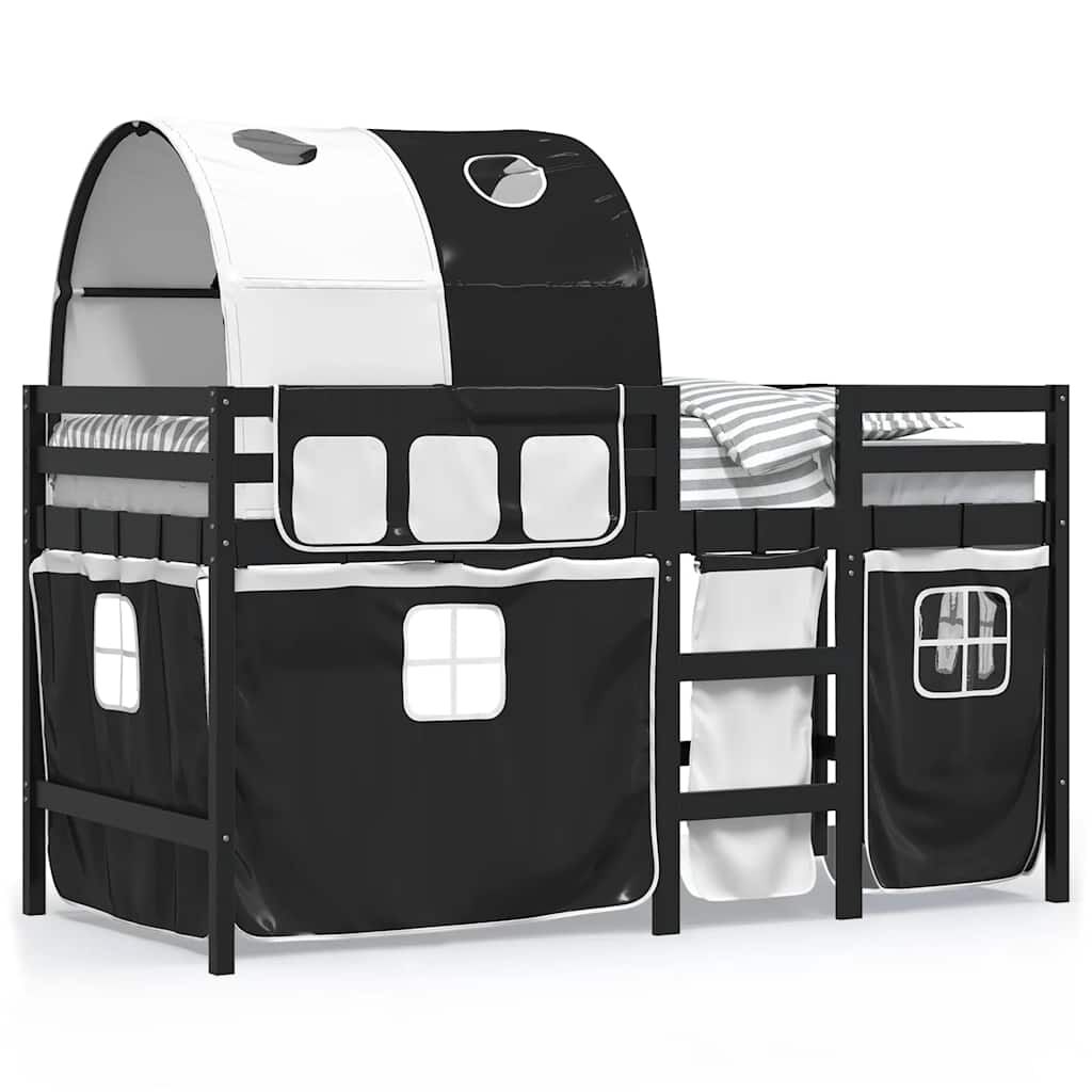 vidaXL Cama alta niños con túnel madera pino blanco negro 80x200 cm