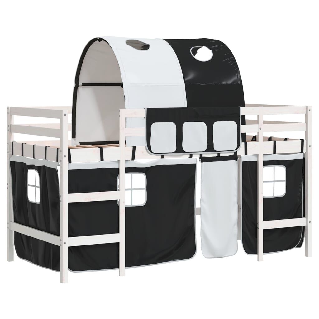 vidaXL Cama alta niños con túnel madera pino blanco negro 90x200 cm