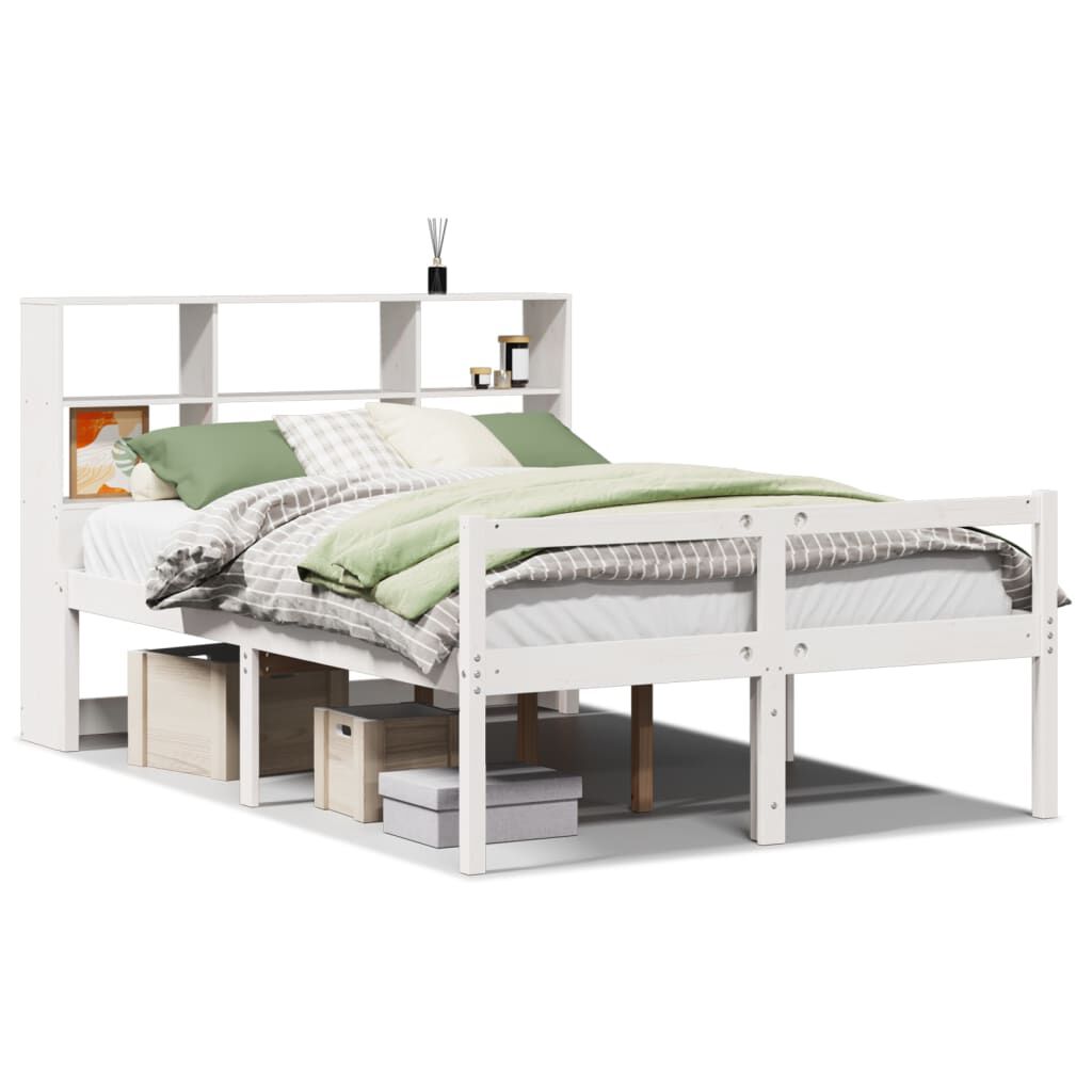 vidaXL Cama con estantería sin colchón madera maciza blanca 120x200 cm