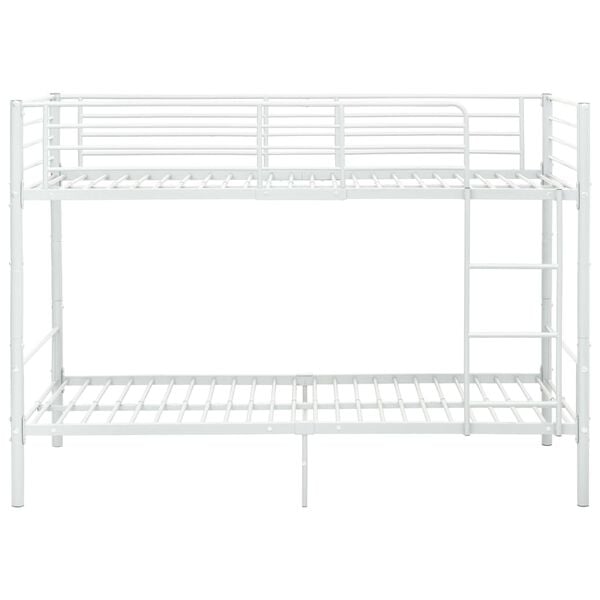 Nuestra litera está hecha de metal resistente con recubrimiento en polvo y garantiza una gran estabilidad y durabilidad. Diseñada teniendo en cuenta la seguridad, esta litera incluye barandillas de protección a lo largo de todo el lateral y una robusta escalera. Toda la estructura de la cama está hecha con fuertes tubos de metal, lo que la hace muy duradera y adecuada para el uso diario. La cama es fácil de montar.