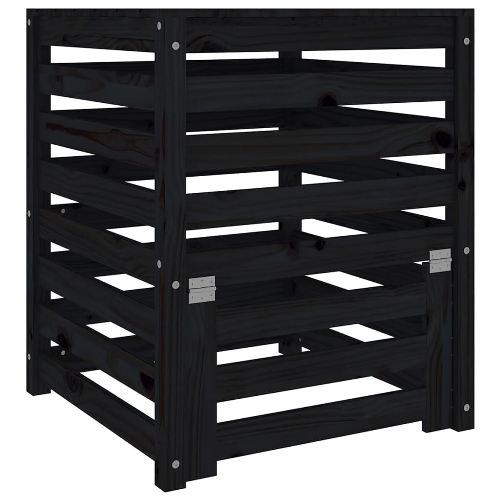 vidaXL Compostador de madera maciza de pino negro 63,5x63,5x77,5 cm