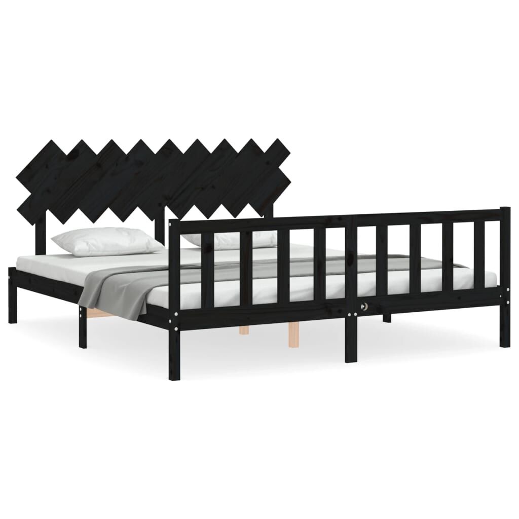 vidaXL Estructura cama de matrimonio con cabecero madera maciza negro
