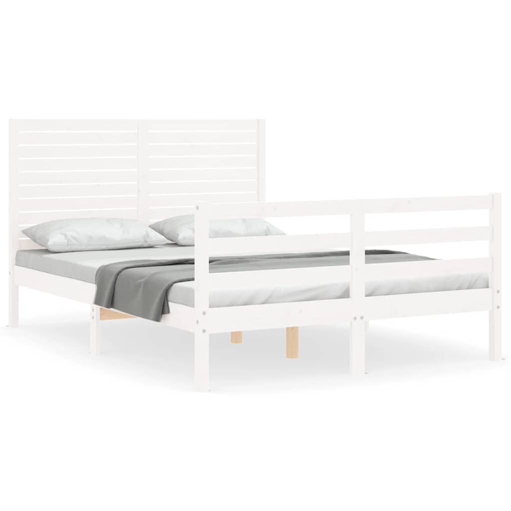 vidaXL Estructura de cama con cabecero madera maciza blanco 120x200 cm