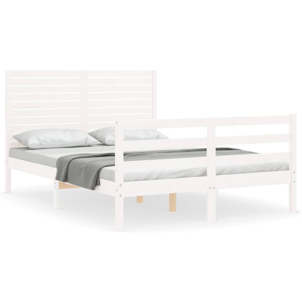vidaXL Estructura de cama con cabecero madera maciza blanco 140x200 cm