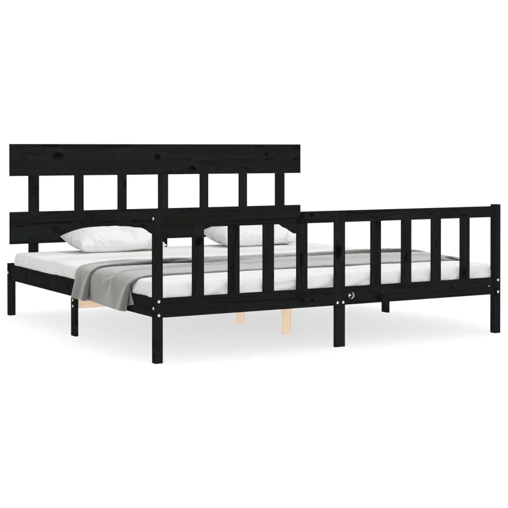 vidaXL Estructura de cama con cabecero madera maciza negro 200x200 cm