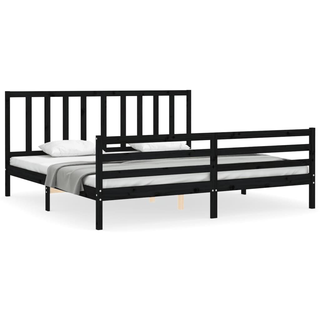 vidaXL Estructura de cama con cabecero madera maciza negro 200x200 cm