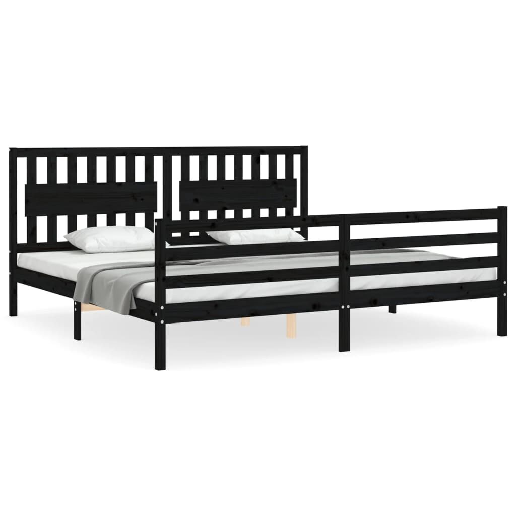 vidaXL Estructura de cama con cabecero madera maciza negro 200x200 cm
