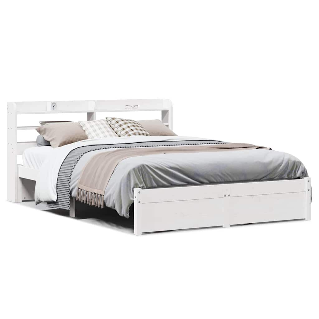 vidaXL Estructura de cama con cabecero madera pino blanco 135x190 cm