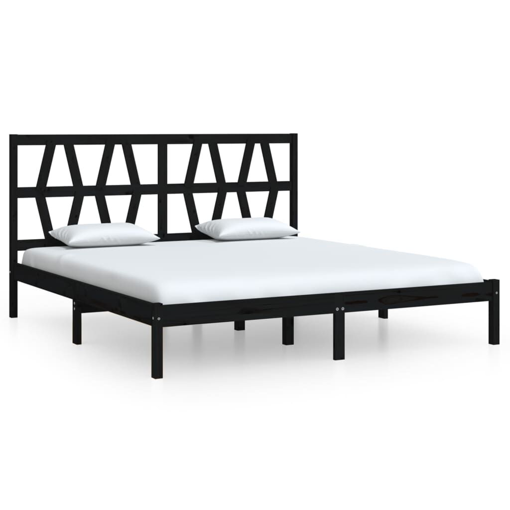 vidaXL Estructura de cama doble sin colchón madera maciza negro