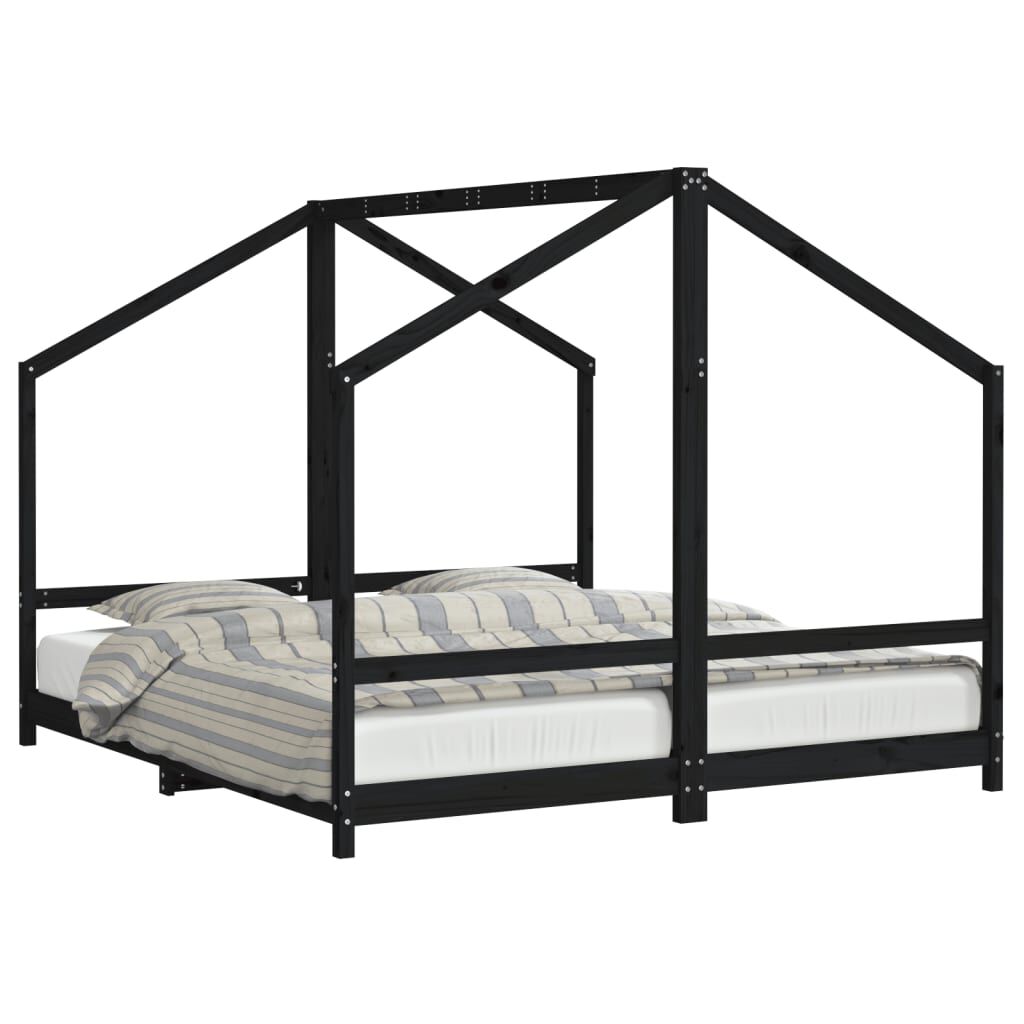 vidaXL Estructura de cama para niños madera pino negro 2x(90x200) cm