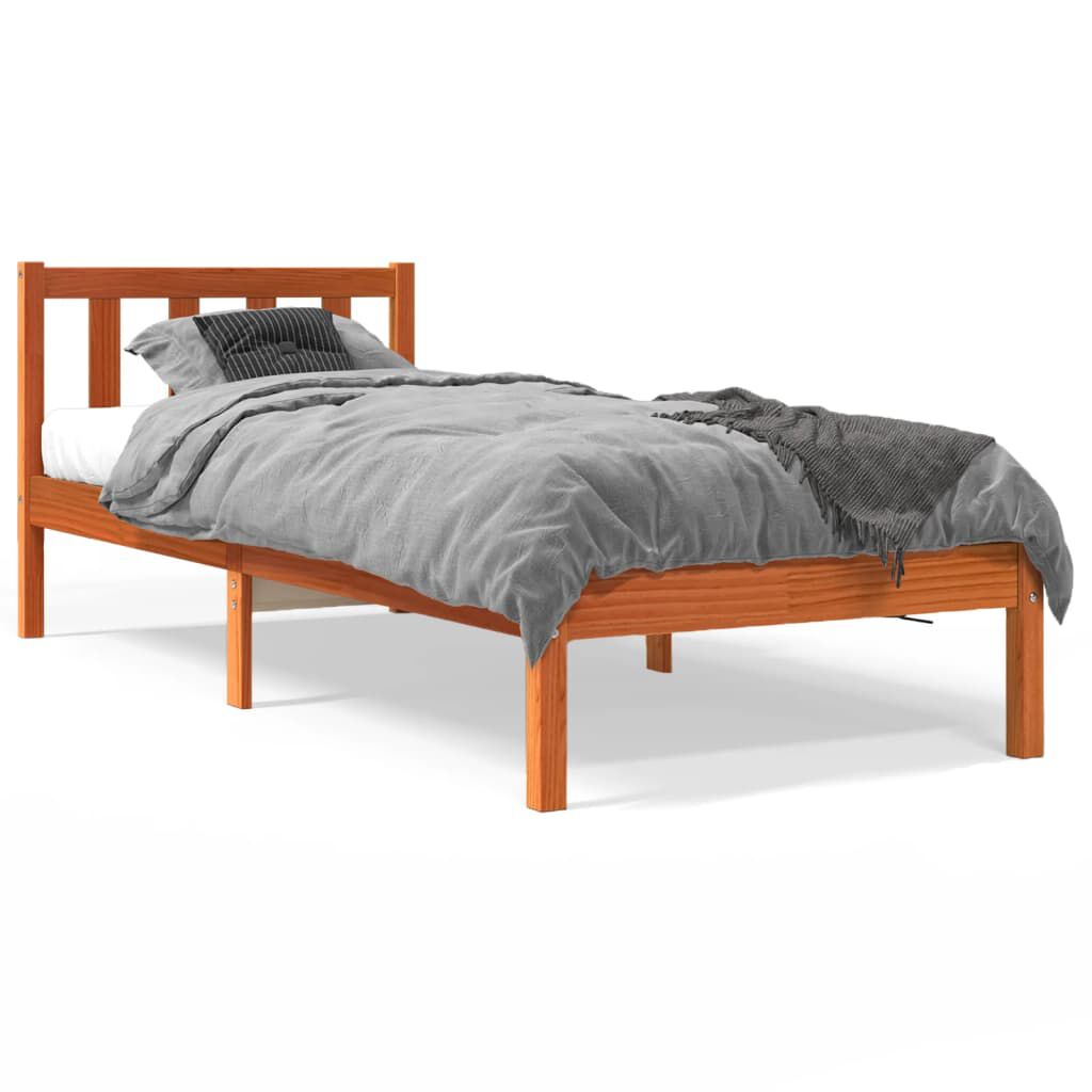 vidaXL Estructura de cama sin colchón madera maciza marrón 75x190 cm