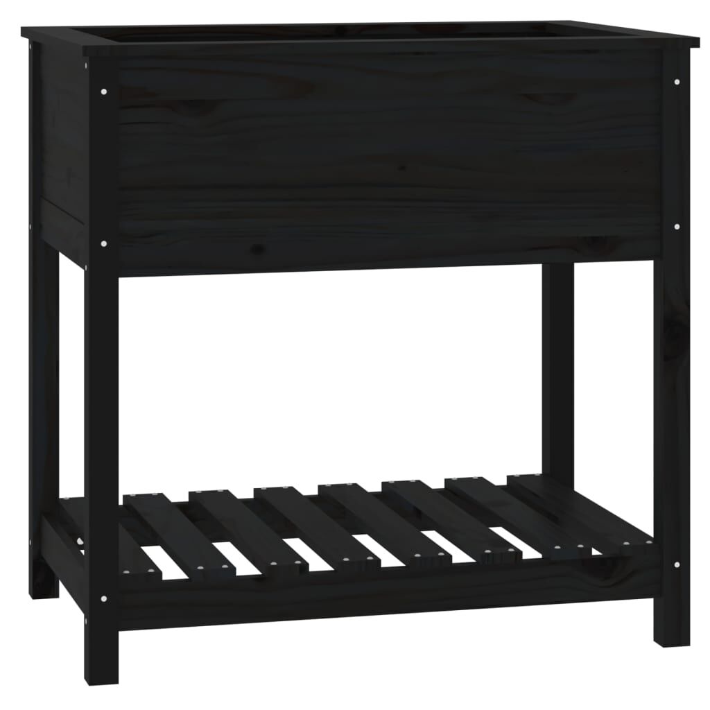 vidaXL Jardinera con estante madera maciza de pino negro 82,5x54x81 cm