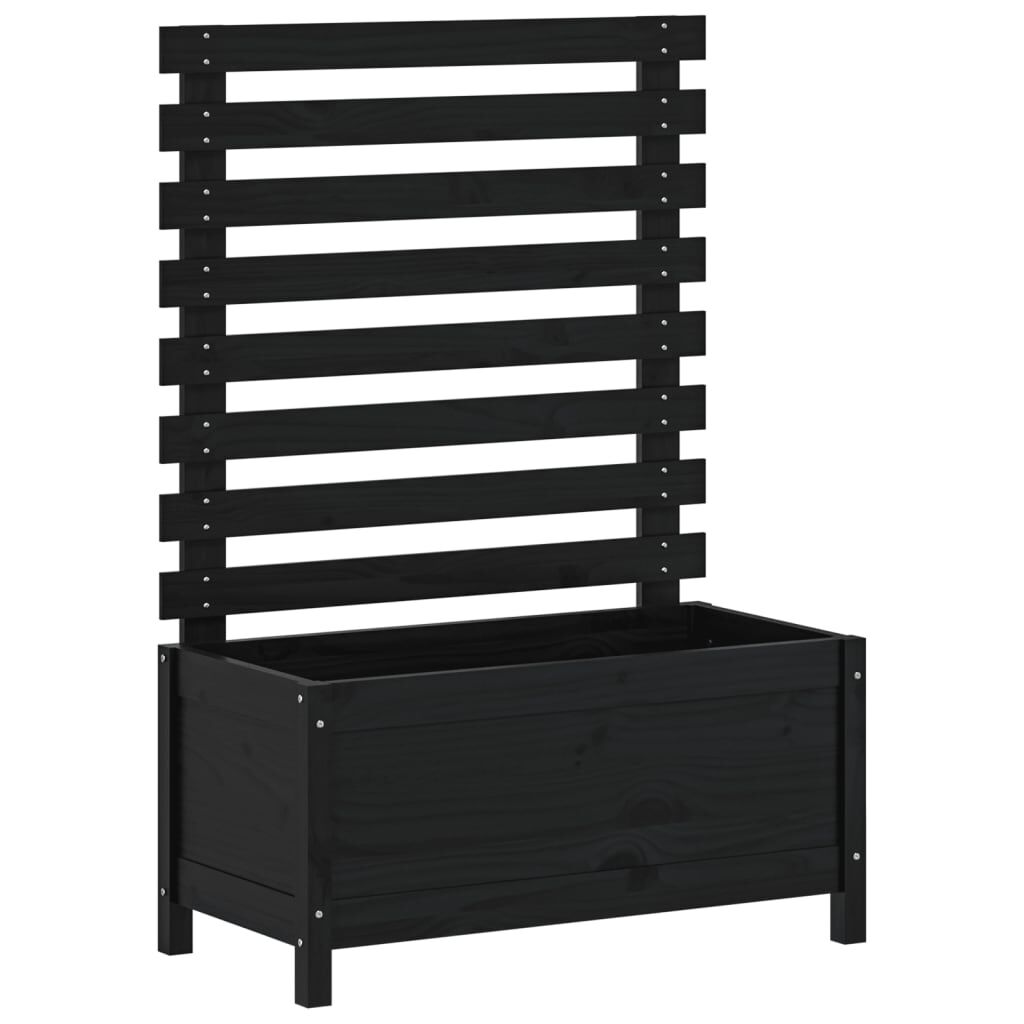 vidaXL Jardinera con estantería madera maciza pino negro 79x39,5x114cm