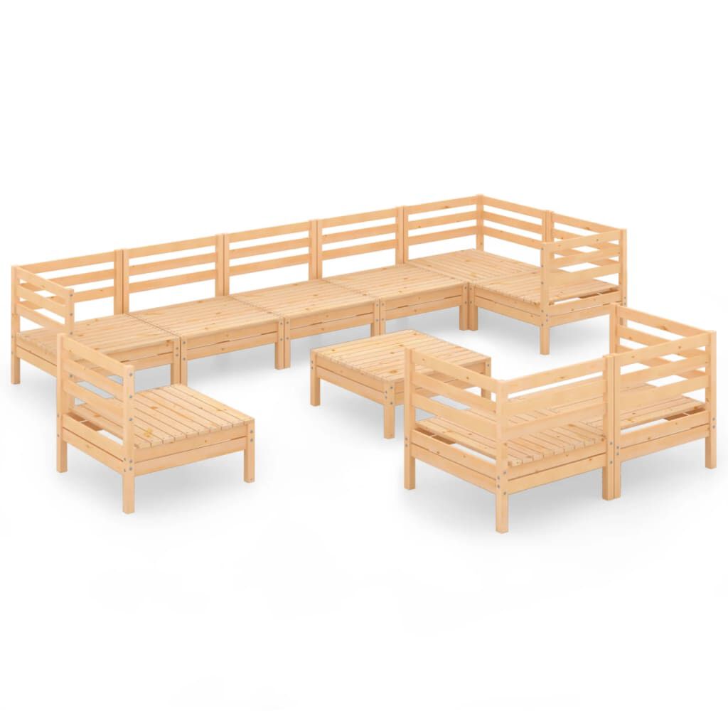 vidaXL Juego de muebles de jardín 10 piezas madera maciza de pino