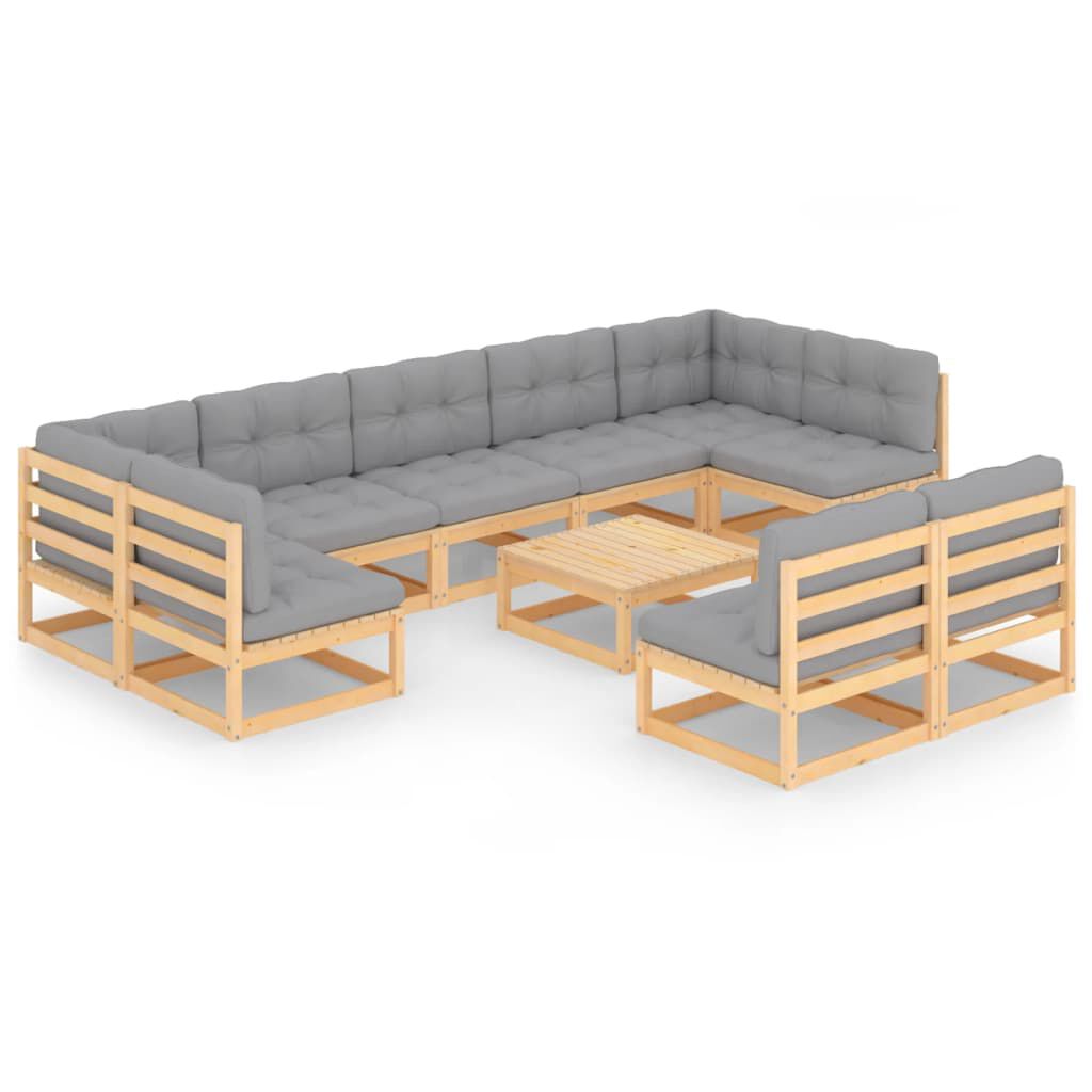 vidaXL Juego de muebles de jardín 10 pzas y cojines madera maciza pino