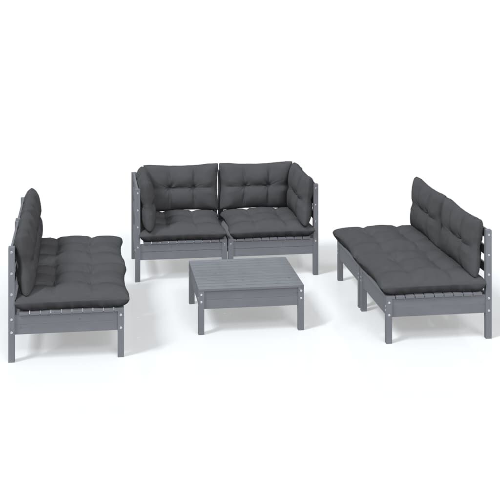 vidaXL Juego de muebles de jardín 7 pzas y cojines madera maciza pino