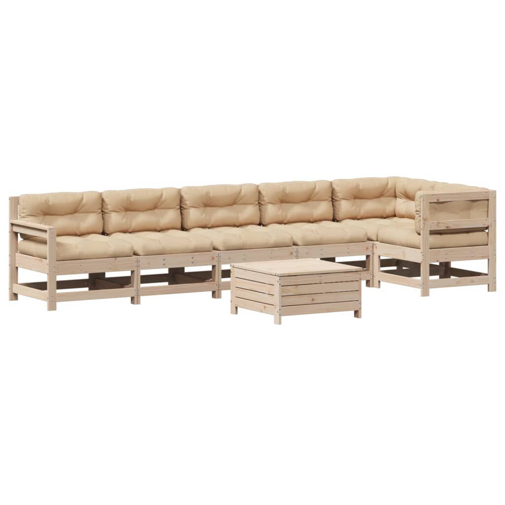 vidaXL Juego de muebles de jardín 7 pzas y cojines madera maciza pino