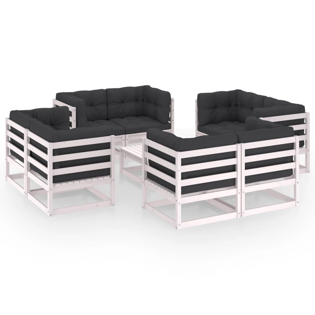 vidaXL Juego de muebles de jardín 9 pzas y cojines madera pino maciza