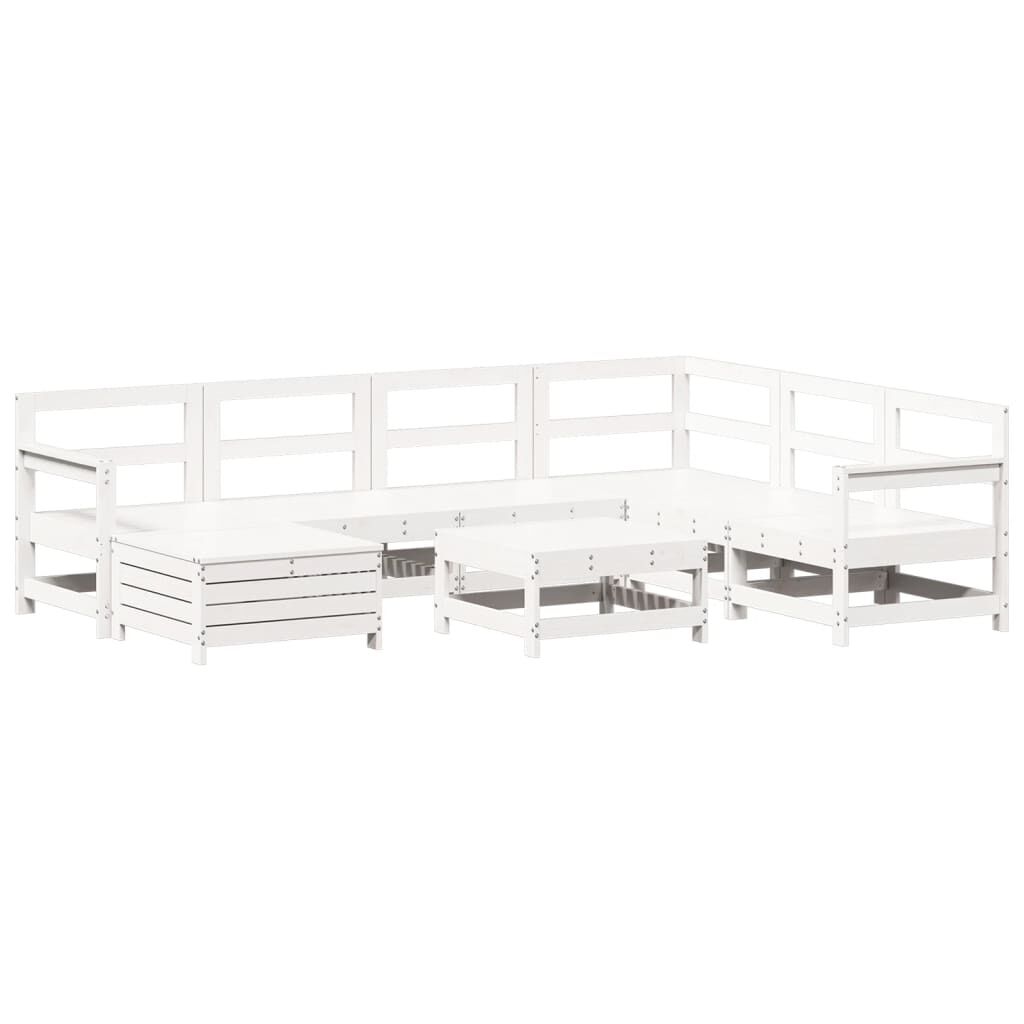 vidaXL Juego de sofás de jardín 8 pzas madera maciza de pino blanco