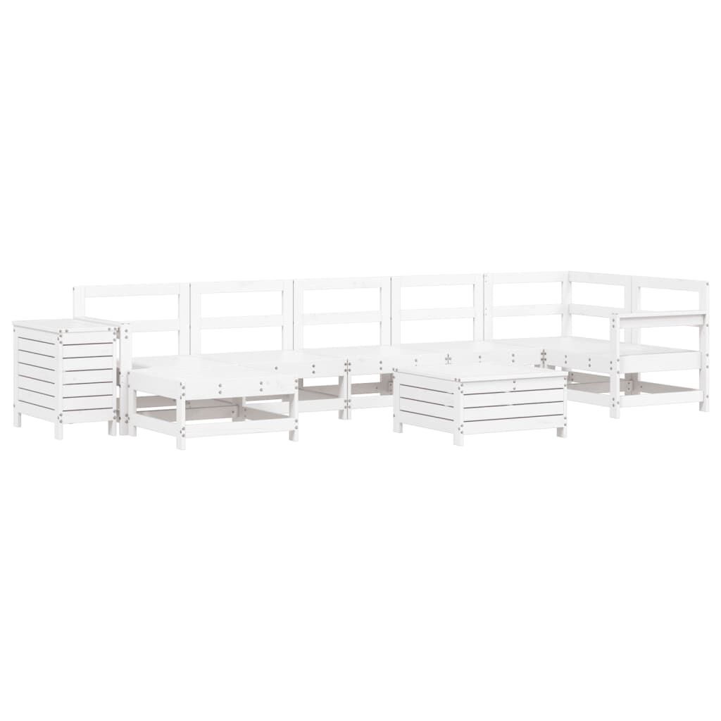 vidaXL Juego de sofás de jardín 9 pzas madera maciza de pino blanco