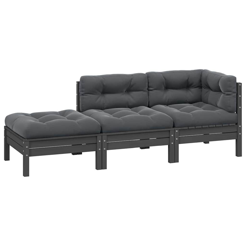vidaXL Juego muebles jardín 3 pzas y cojines gris madera pino maciza
