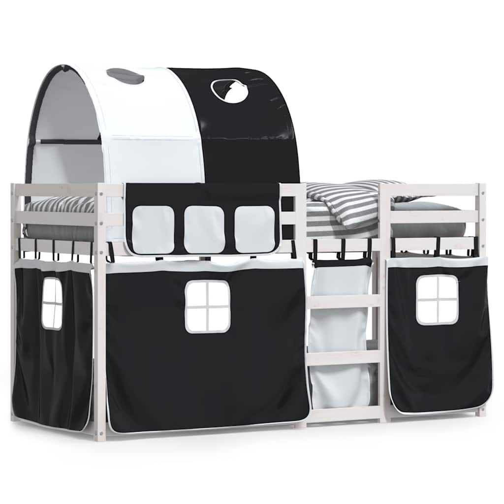 vidaXL Litera con cortinas madera maciza pino blanco y negro 90x190 cm