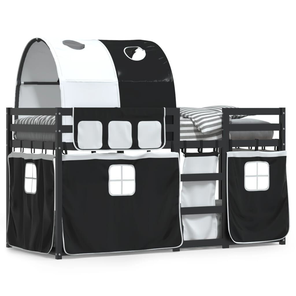 vidaXL Litera con cortinas madera maciza pino blanco y negro 90x200 cm