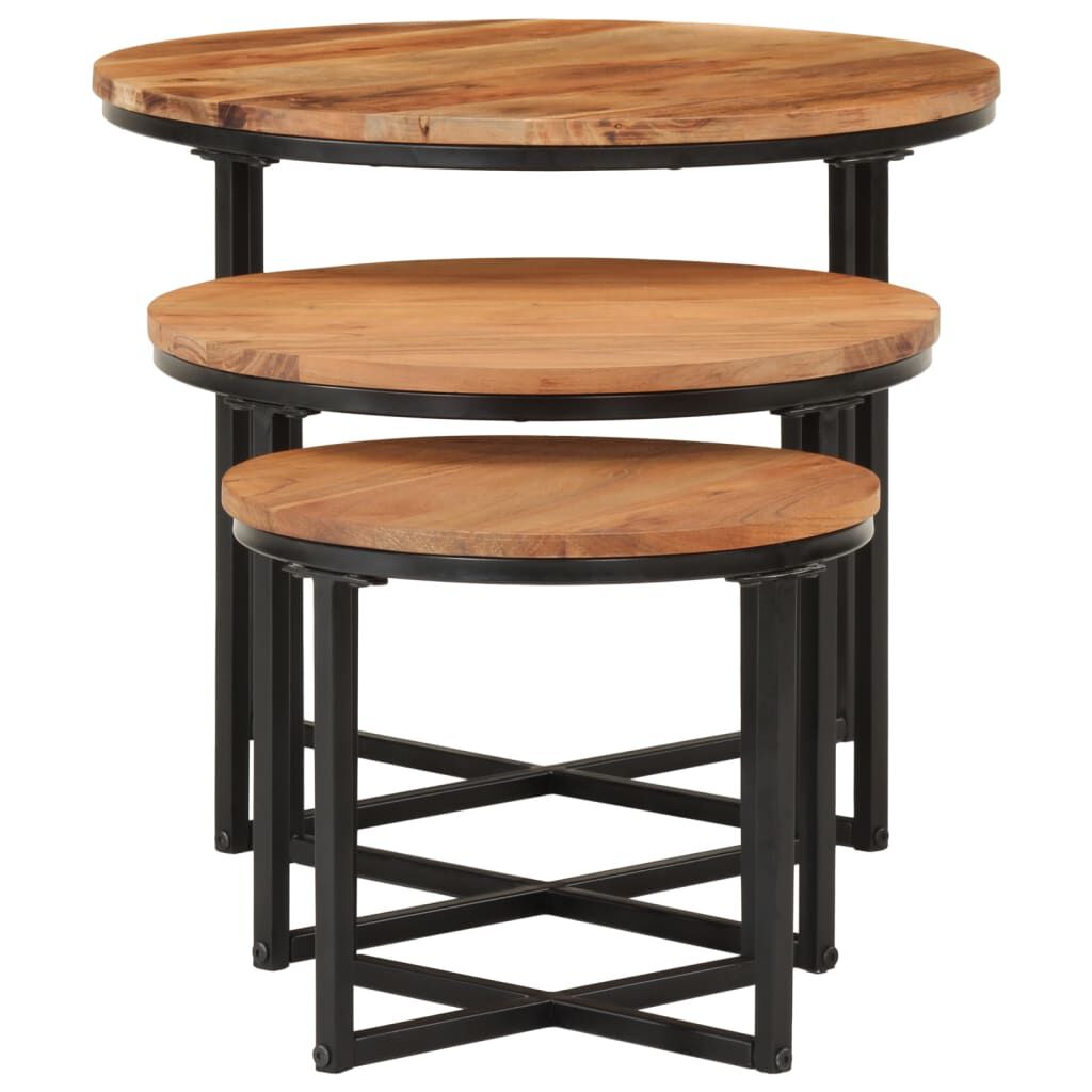 vidaXL Mesas de centro apilables 3 pzas madera maciza acacia y hierro