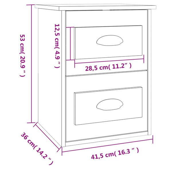 vidaXL Mesita de noche de pared 2 uds color roble ahumado 41,5x36x53cm