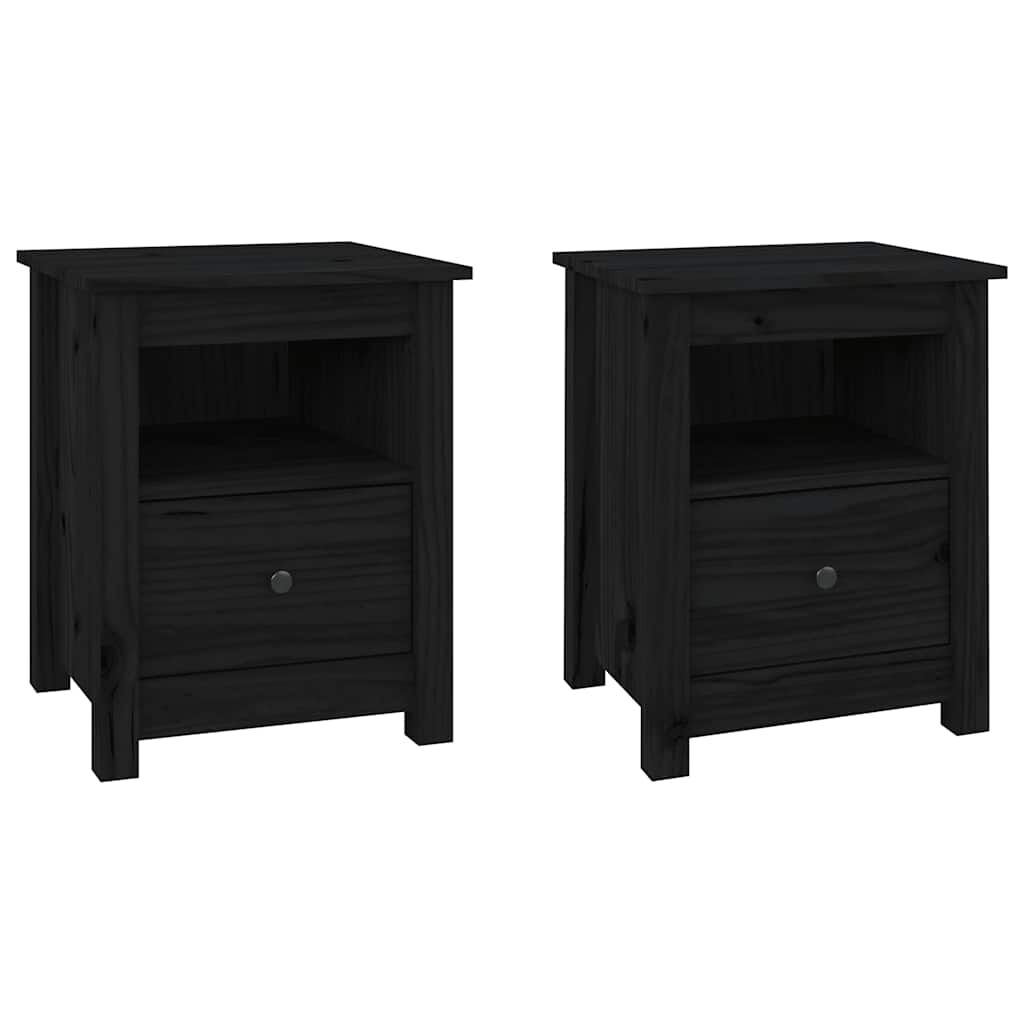 vidaXL Mesitas de noche 2 uds madera maciza de pino negra 40x35x49 cm