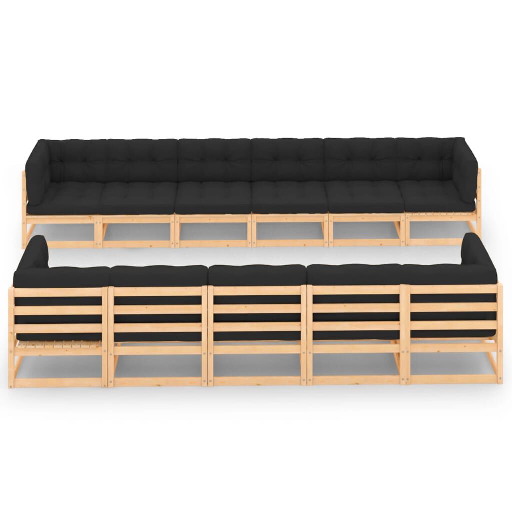 vidaXL Muebles de jardín 11 pzas cojines antracita madera maciza pino