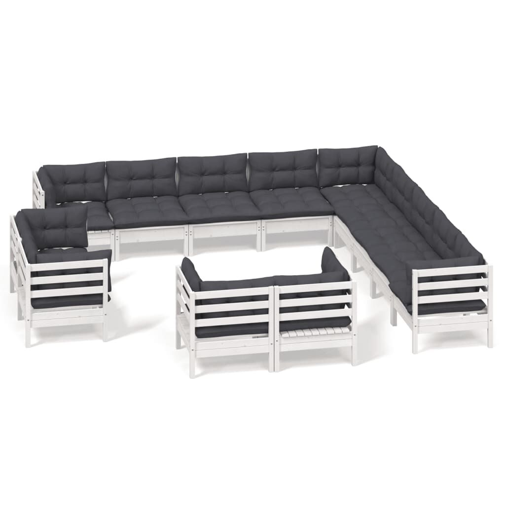 vidaXL Muebles de jardín 13 pzas y cojines blanco madera maciza pino