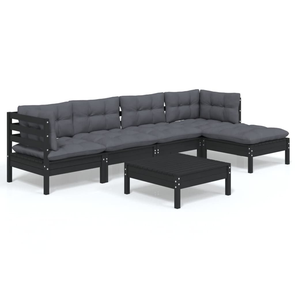 vidaXL Muebles de jardín 6 pzas con cojines negro madera de pino