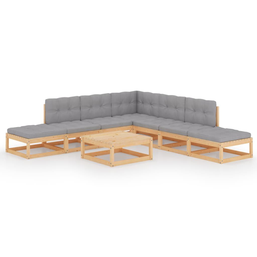 vidaXL Muebles de jardín 8 piezas con cojines de madera de pino maciza