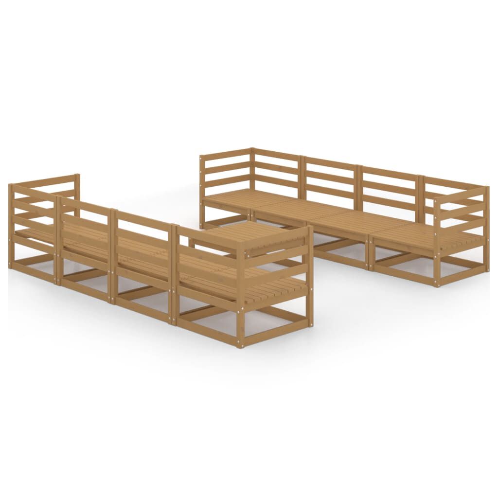 vidaXL Muebles de jardín 9 piezas marrón miel madera maciza de pino