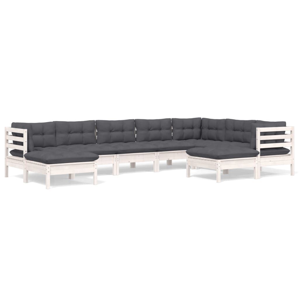 vidaXL Muebles de jardín 9 pzas y cojines blanco madera maciza de pino