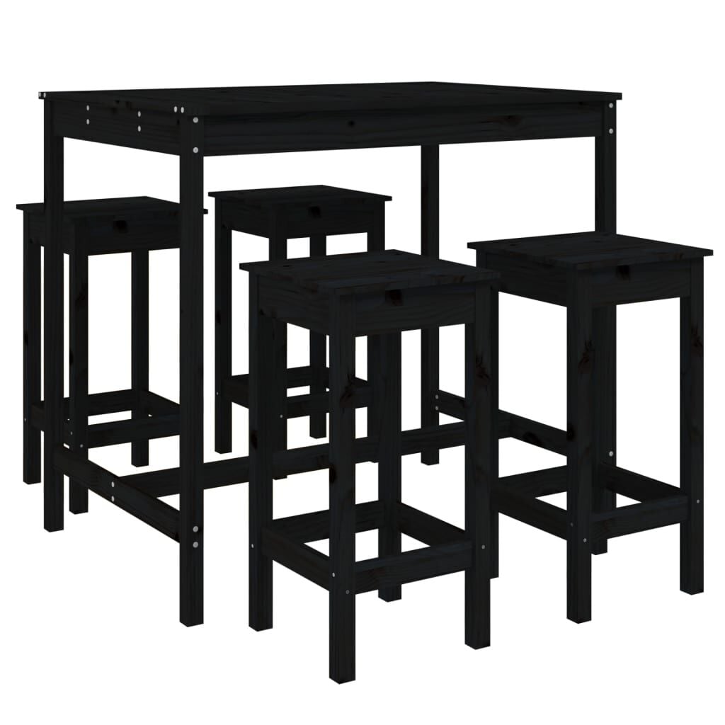 vidaXL Set de mesa y taburetes altos jardín 5 piezas madera pino negro