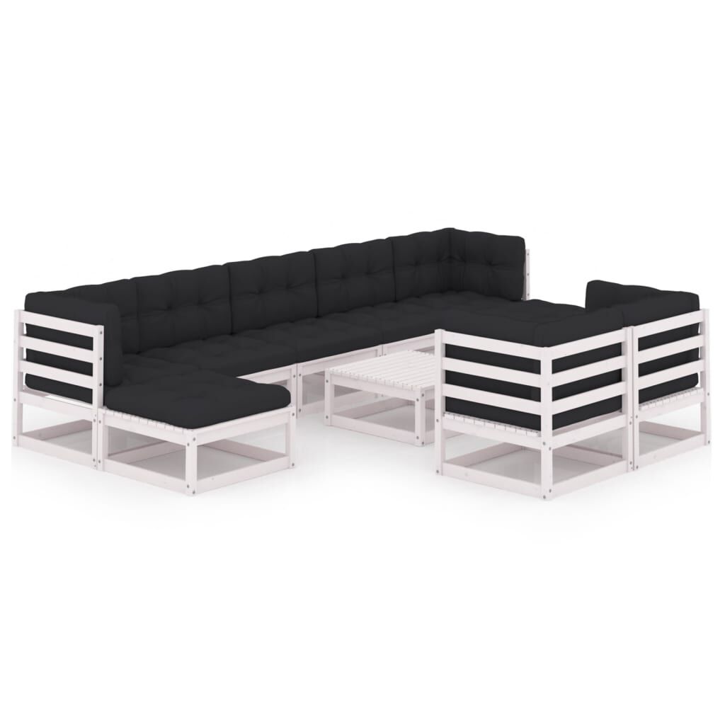 vidaXL Set de muebles de jardín 10 pzas con cojines madera pino blanco