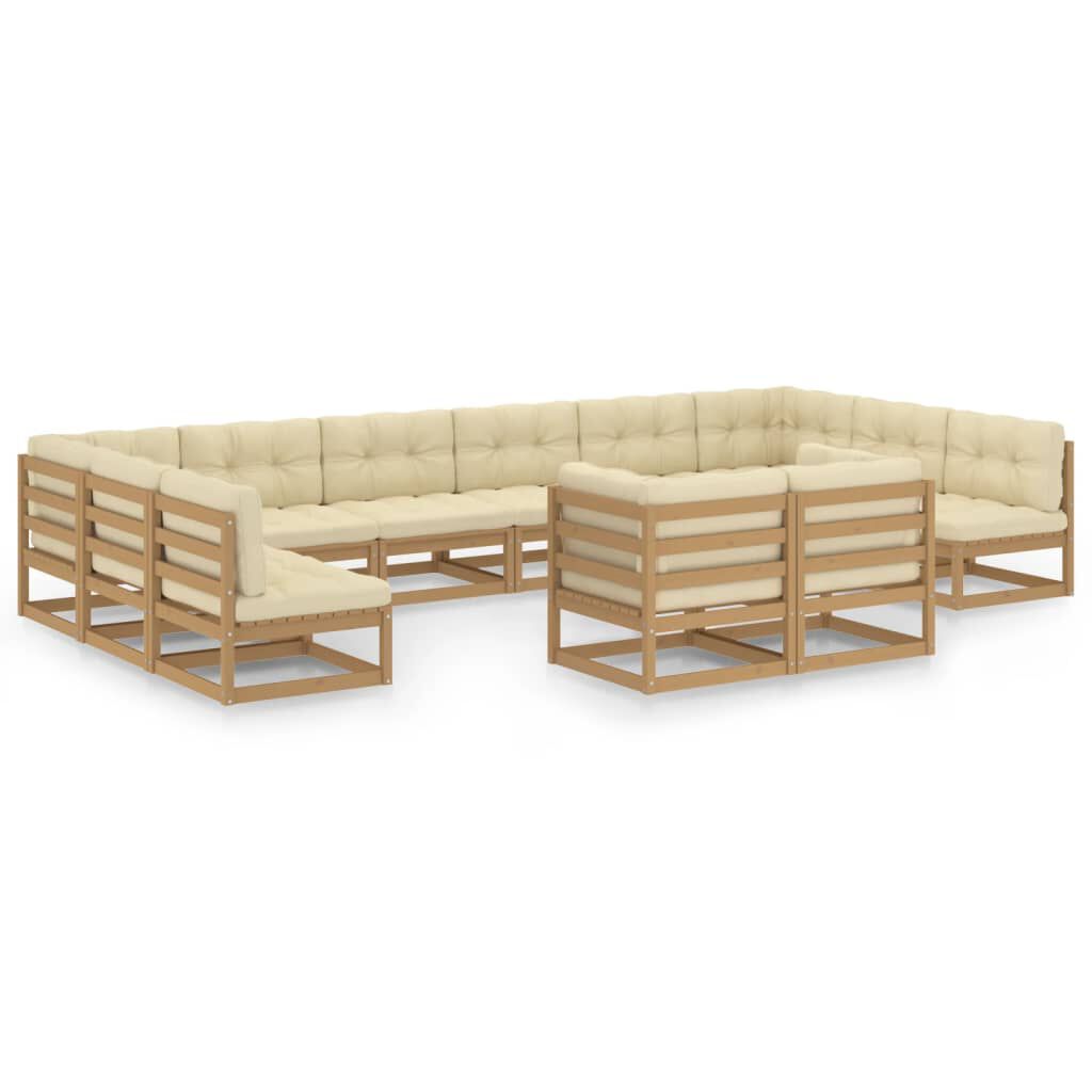 vidaXL Set de muebles de jardín 12 pzs cojines madera pino marrón miel