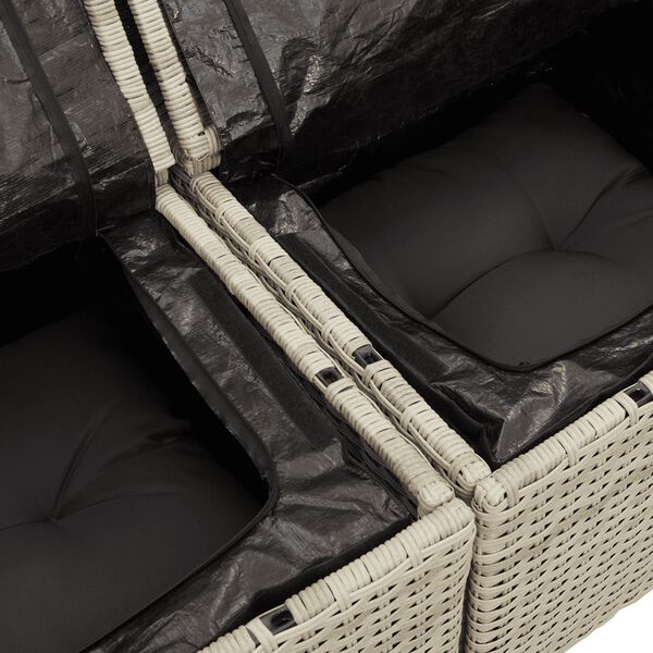 • Función de almacenamiento con bolsa resistente al agua: El mueble de jardín cuenta con espacio de almacenamiento debajo del asiento, completo con una bolsa resistente al agua para guardar cojines, juguetes y otros artículos. La bolsa interior se puede sujetar de forma segura a los muebles de exterior con cierres de gancho y bucle para mayor estabilidad.