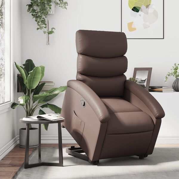 vidaXL Sillón reclinable elevable cuero sintético marrón