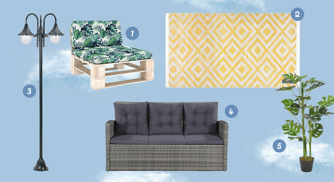 Busca cojines coloridos, alfombras texturizadas, guirnaldas de luces centelleantes y plantas en macetas. Estos sencillos toques convertirán tu salón al aire libre en un paraíso de relajación sin gastar demasiado.