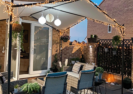 1. Ilumina con guirnaldas de luces, farolillos y velas sin llama para crear un ambiente acogedor. .