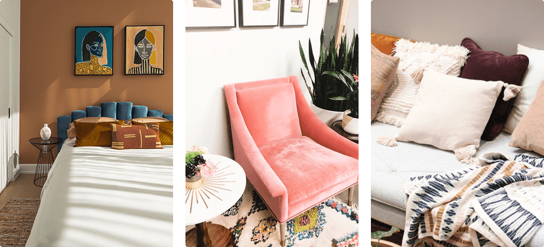 Lo mejor de decorar con terciopelo es que queda bien en todas partes. Va con cada habitación, distribución, estilo o tipo de mobiliario. Te permite crear diseños atrevidos con piezas destacadas, o puedes optar por una apariencia más sutil con accesorios aterciopelados. Por último, pero no menos importante, el terciopelo también te anima a jugar con el contraste para lograr un atractivo visual único.