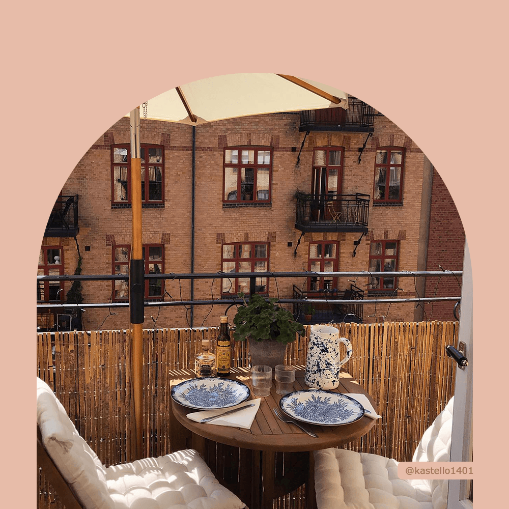 2. Para disfrutar de tu espacio urbano al aire libre incluso cuando el sol brilla intensamente, consigue un poco de sombra protectora de una sombrilla o pantalla de balcón.